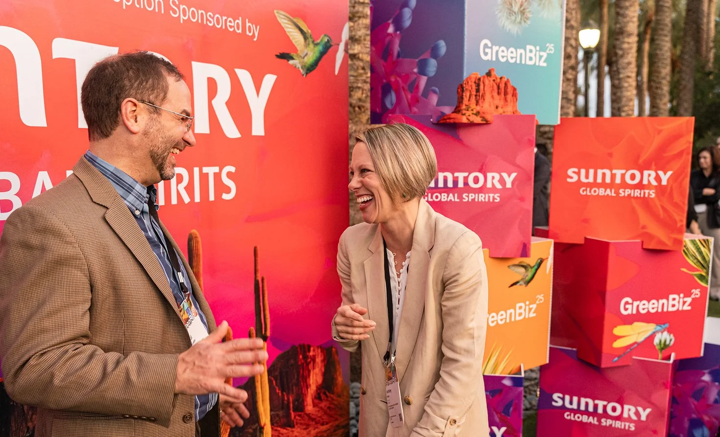For Suntory Global Spirits, I created a custom reception backdrop and branded cubes that energized the bars and plaza with a fun, high-energy vibe.